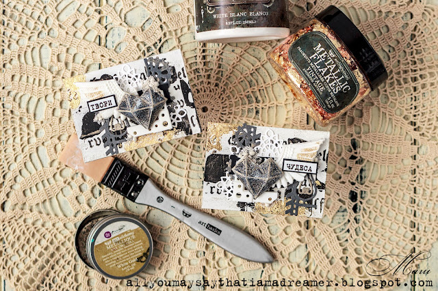 Новите ми АТС-та вдъхновени от палитрата на Finnabair. Бях малко скептична за комбибнацията сиво и златно, но ми хареса как се получи.